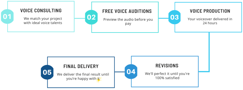 We consolidate the entire voiceover process into one seamless service – saving you valuable time and resources.